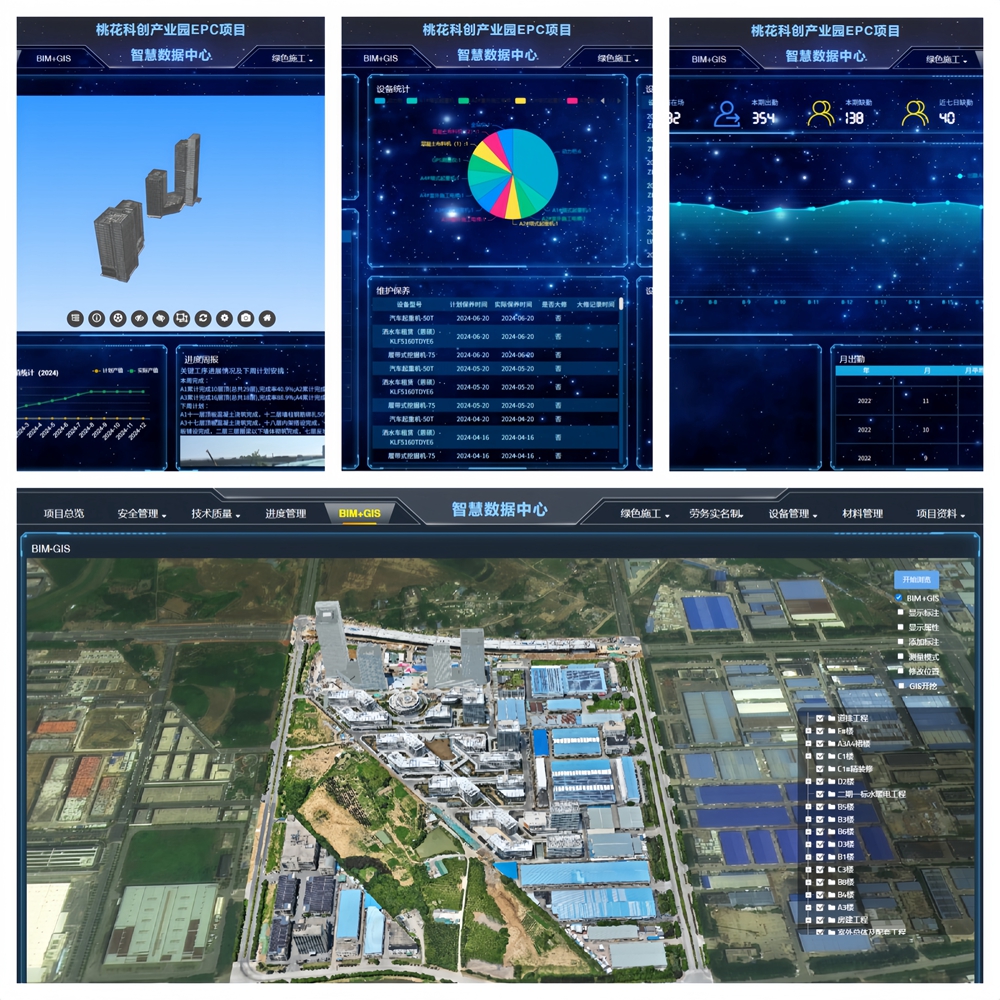 桃花科創(chuàng)園項(xiàng)目堅(jiān)持推廣應(yīng)用BIM和信息化數(shù)字技術(shù),在建設(shè)之初就定下實(shí)現(xiàn)“一網(wǎng)、一云、一模型”的建設(shè)目標(biāo)。即全過程依靠BIM模型搭載數(shù)據(jù)信息,實(shí)現(xiàn)園區(qū)運(yùn)行狀態(tài)立體監(jiān)測全聯(lián)網(wǎng),匯聚共享園區(qū)信息云資源,實(shí)現(xiàn)一模到底?;凇爸腔酃さ亍惫芾硐到y(tǒng),項(xiàng)目采取“監(jiān)控+BIM+GIS”可視化監(jiān)控,迅速、精準(zhǔn)地通過BIM模型中相應(yīng)位置監(jiān)控,檢查和定位現(xiàn)場違規(guī)作業(yè),并采用IP廣播鏈接進(jìn)行應(yīng)急指揮調(diào)度,結(jié)合AI監(jiān)控、智能安全帽等設(shè)備,實(shí)現(xiàn)違規(guī)行為自動預(yù)警提醒,降低安全風(fēng)險(xiǎn)。項(xiàng)目相繼榮獲省住建廳“智慧工地”試點(diǎn)項(xiàng)目以及“合肥市智能建造試點(diǎn)工程”。