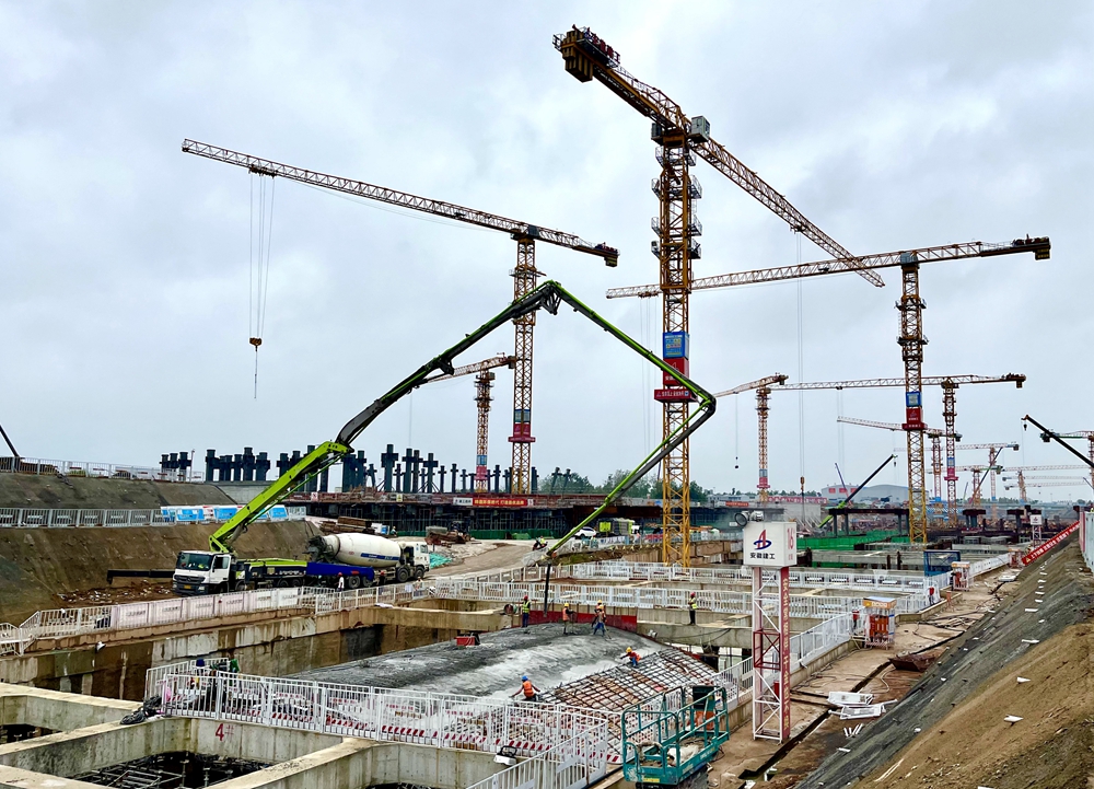 9月12日,經(jīng)過28小時(shí)的緊張施工,合肥新橋國際機(jī)場(chǎng)綜合交通中心項(xiàng)目合新六城際鐵路新橋機(jī)場(chǎng)站先行工程首段馬蹄拱形頂板澆筑完成。