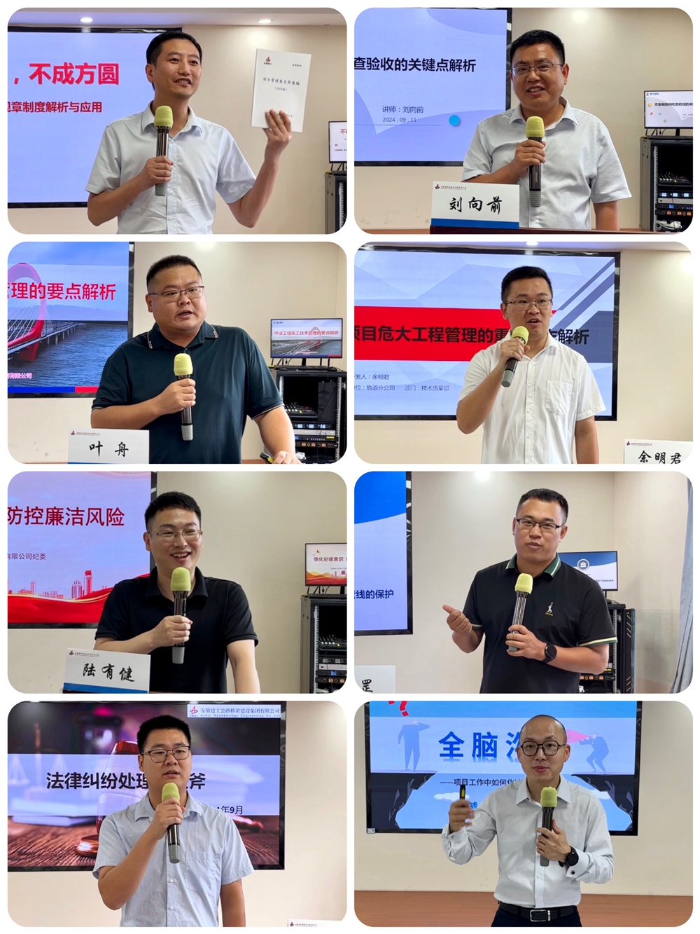 培訓內容包括集團最新規(guī)章制度解析、方案編制和項目危大工程管理、廉潔風險防范、法律糾紛處理以及通用管理等課程。