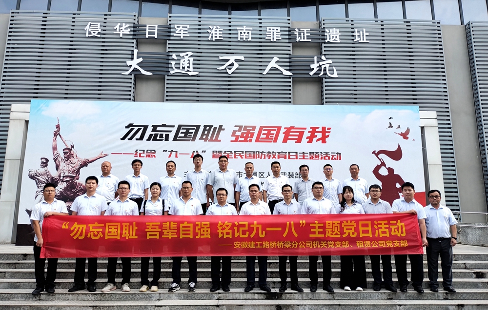 9月18日,橋梁分公司機關黨支部和租賃公司黨支部到淮南市大通萬人坑教育館開展“勿忘國恥 吾輩自強 銘記九一八”主題黨日活動。