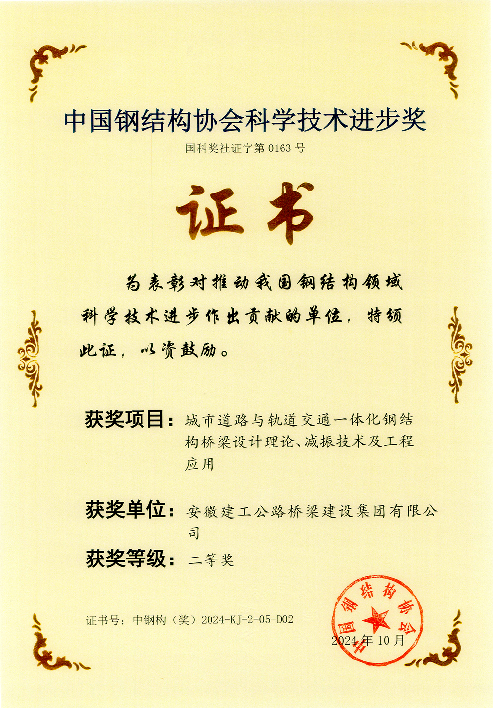 10月22日,“中國(guó)鋼結(jié)構(gòu)協(xié)會(huì)成立40周年紀(jì)念大會(huì)暨2024中國(guó)鋼結(jié)構(gòu)大會(huì)”在北京召開,會(huì)議對(duì)2024年度中國(guó)鋼結(jié)構(gòu)協(xié)會(huì)科學(xué)技術(shù)進(jìn)步獎(jiǎng)、技術(shù)創(chuàng)新獎(jiǎng)進(jìn)行了頒獎(jiǎng)。公司參與的“城市道路與軌道交通一體化鋼結(jié)構(gòu)橋梁設(shè)計(jì)理論、減振技術(shù)及工程應(yīng)用”項(xiàng)目榮獲科學(xué)技術(shù)進(jìn)步獎(jiǎng)二等獎(jiǎng)。