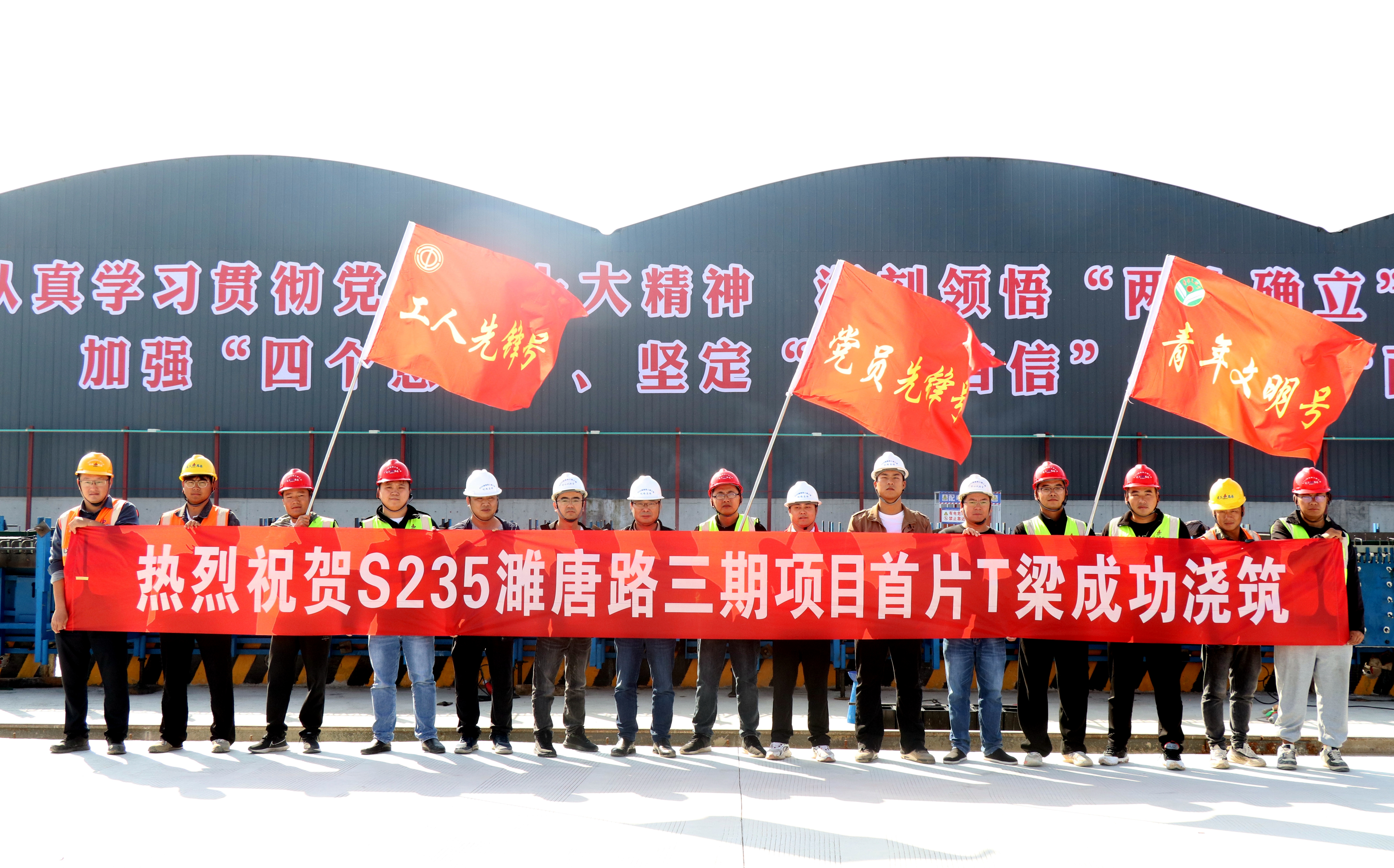 10月30日下午,S235濉唐路三期項(xiàng)目首片T梁澆筑完成,項(xiàng)目橋梁預(yù)制生產(chǎn)正式啟動。