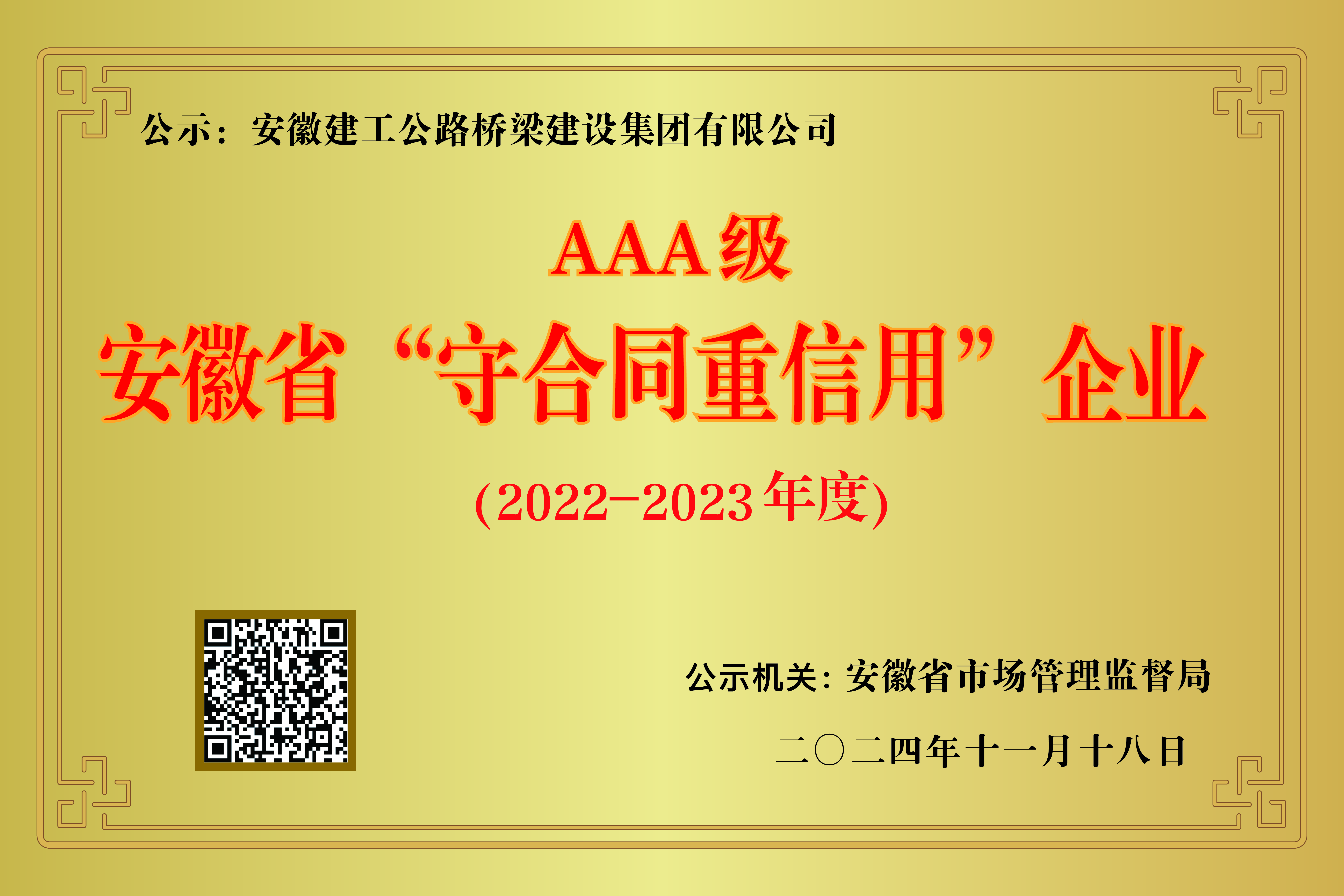 近日,安徽省市場(chǎng)監(jiān)督管理局發(fā)布了2022-2023年度“安徽省守合同重信用”AAA級(jí)企業(yè)名單,公司榮登榜單。