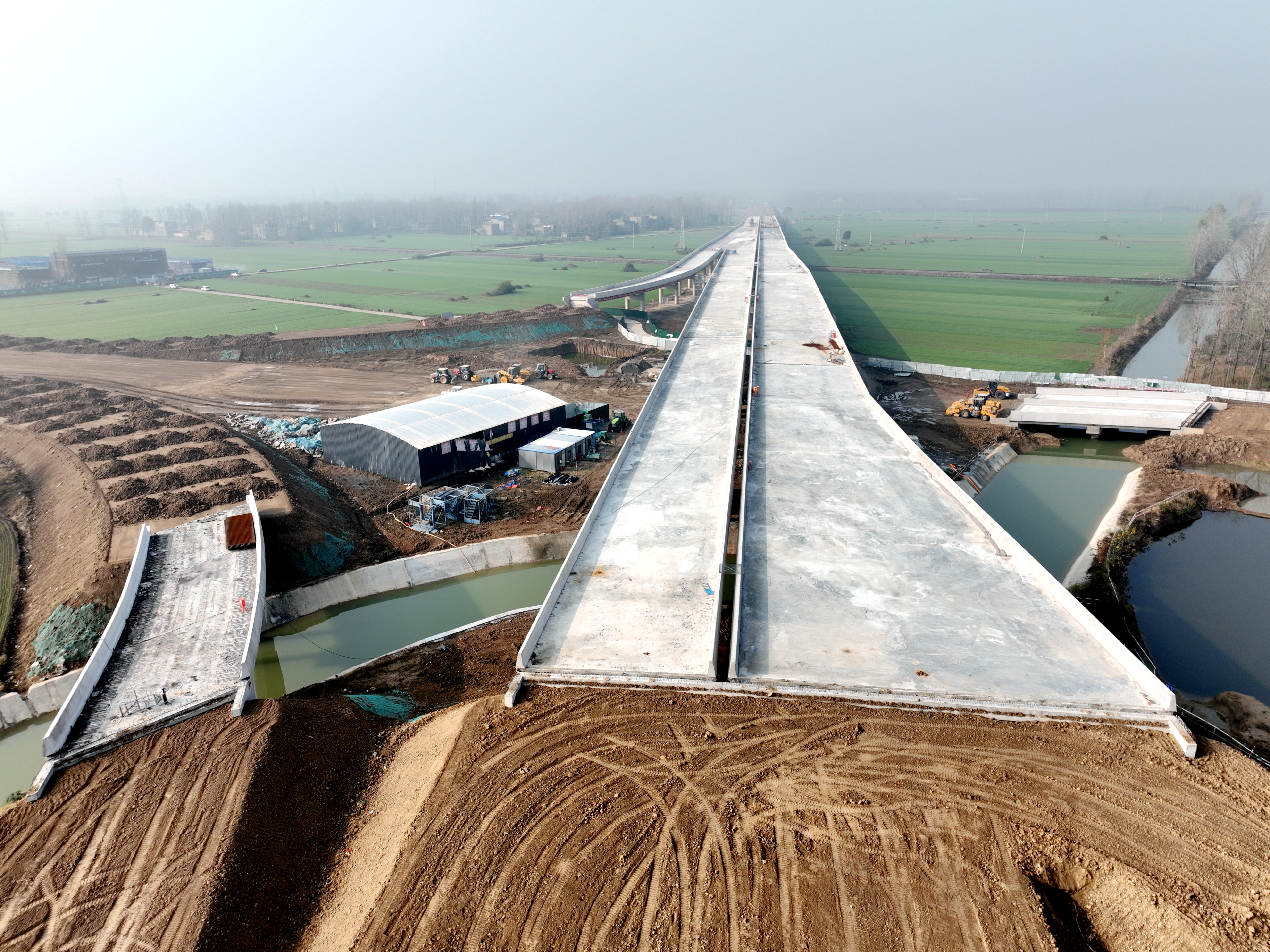 【路橋“競”行時(shí)】徐淮阜高速亳州段路基02標(biāo)跨淮北礦業(yè)鐵路橋完成橋面鋪裝