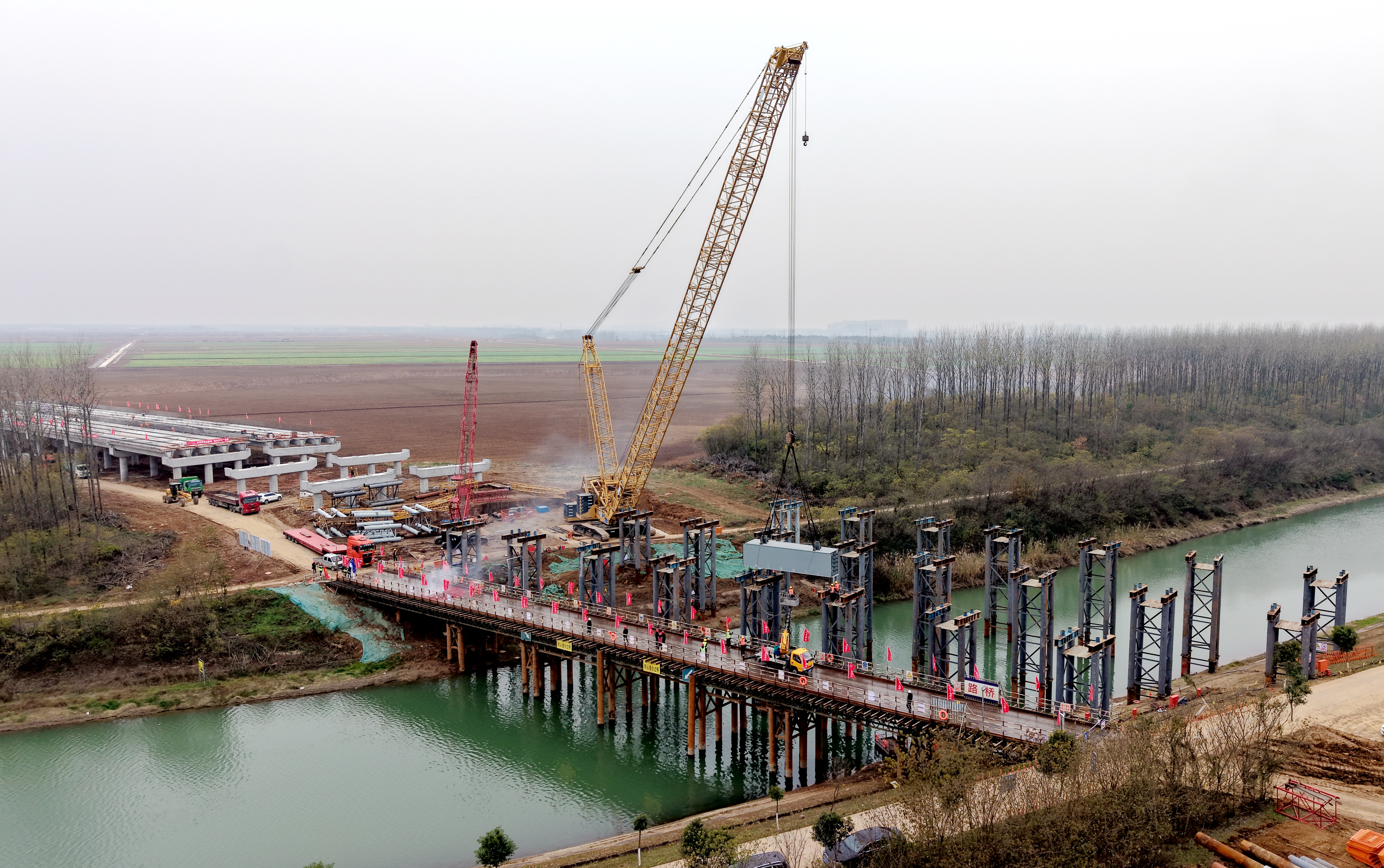 【路橋“競(jìng)”行時(shí)】淮桐高速合肥段路基2標(biāo)淠河總干渠大橋主橋首片鋼梁順利架設(shè)