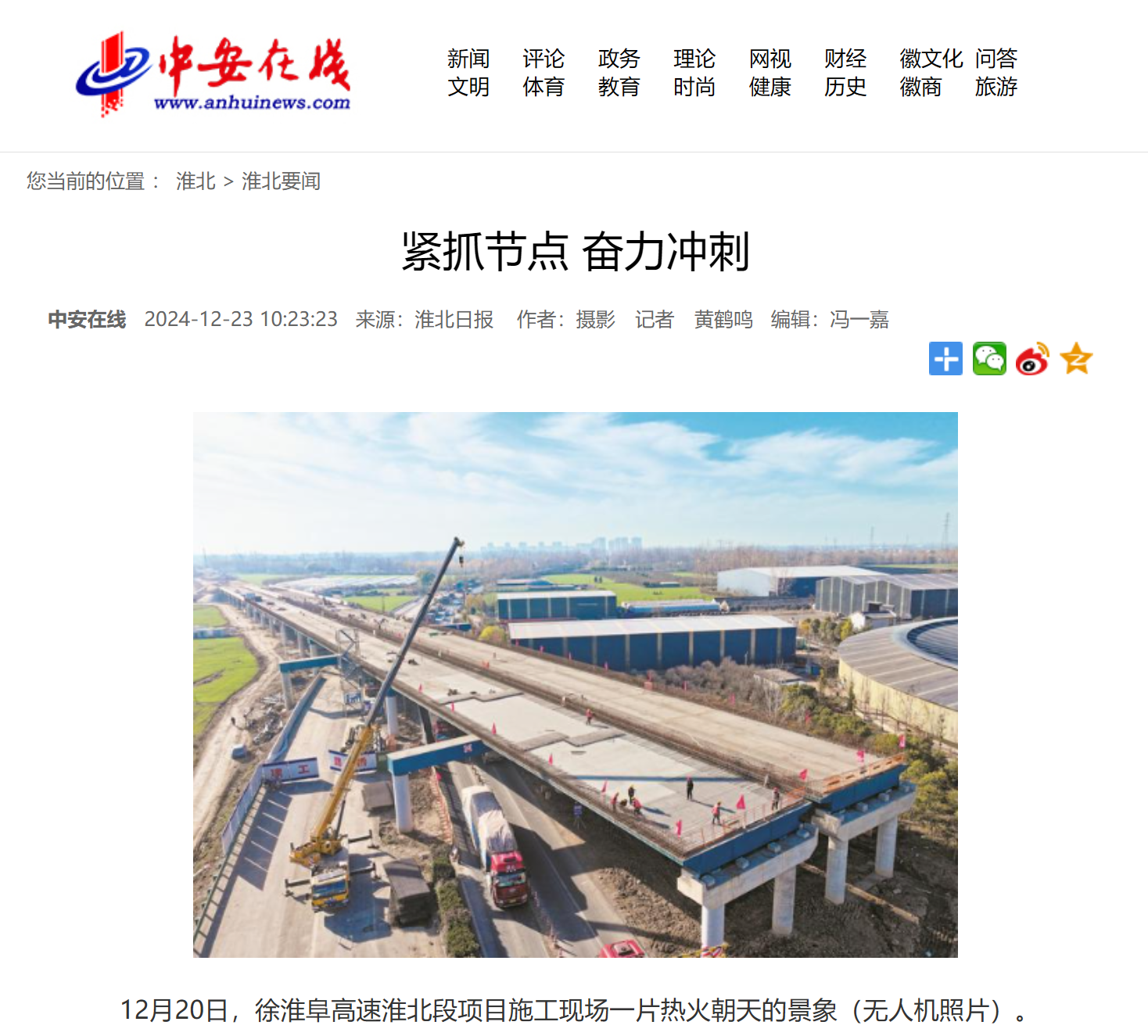 【名媒聚焦】中安在線、淮北日?qǐng)?bào):徐淮阜高速淮北段項(xiàng)目緊抓節(jié)點(diǎn) 奮力沖刺