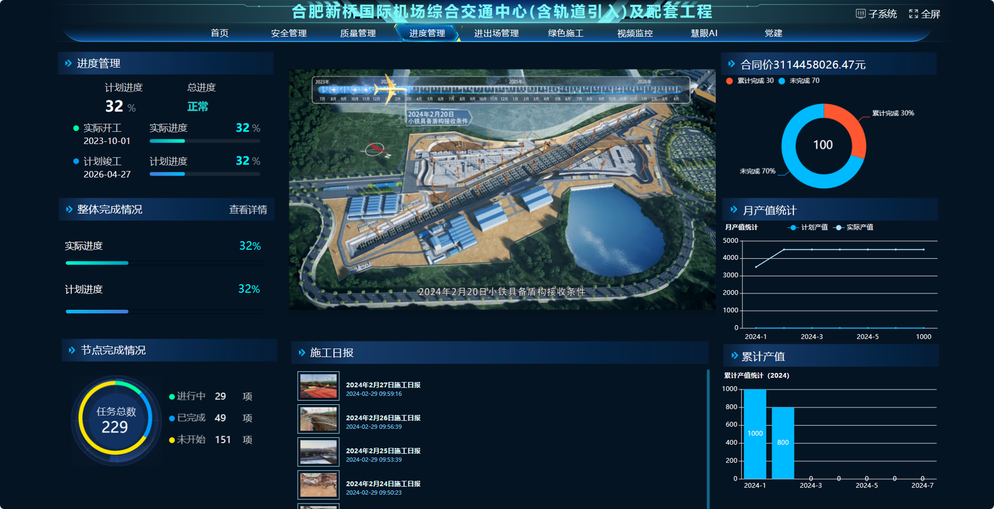 合肥新橋國際機(jī)場(chǎng)GTC主體工程項(xiàng)目是安徽省內(nèi)單體交叉空間最復(fù)雜的綜合交通樞紐工程,采用空地軌一體化設(shè)計(jì)方案,關(guān)鍵線路施工難度大,組織協(xié)調(diào)要求高。公司利用BIM技術(shù)對(duì)綜合交通中心進(jìn)行全專業(yè)建模,有效利用BIM深化設(shè)計(jì)、模擬施工組織、分析施工變更、進(jìn)行三維技術(shù)交底,助力施工生產(chǎn),提高施工管理效率,提升工程品質(zhì)。