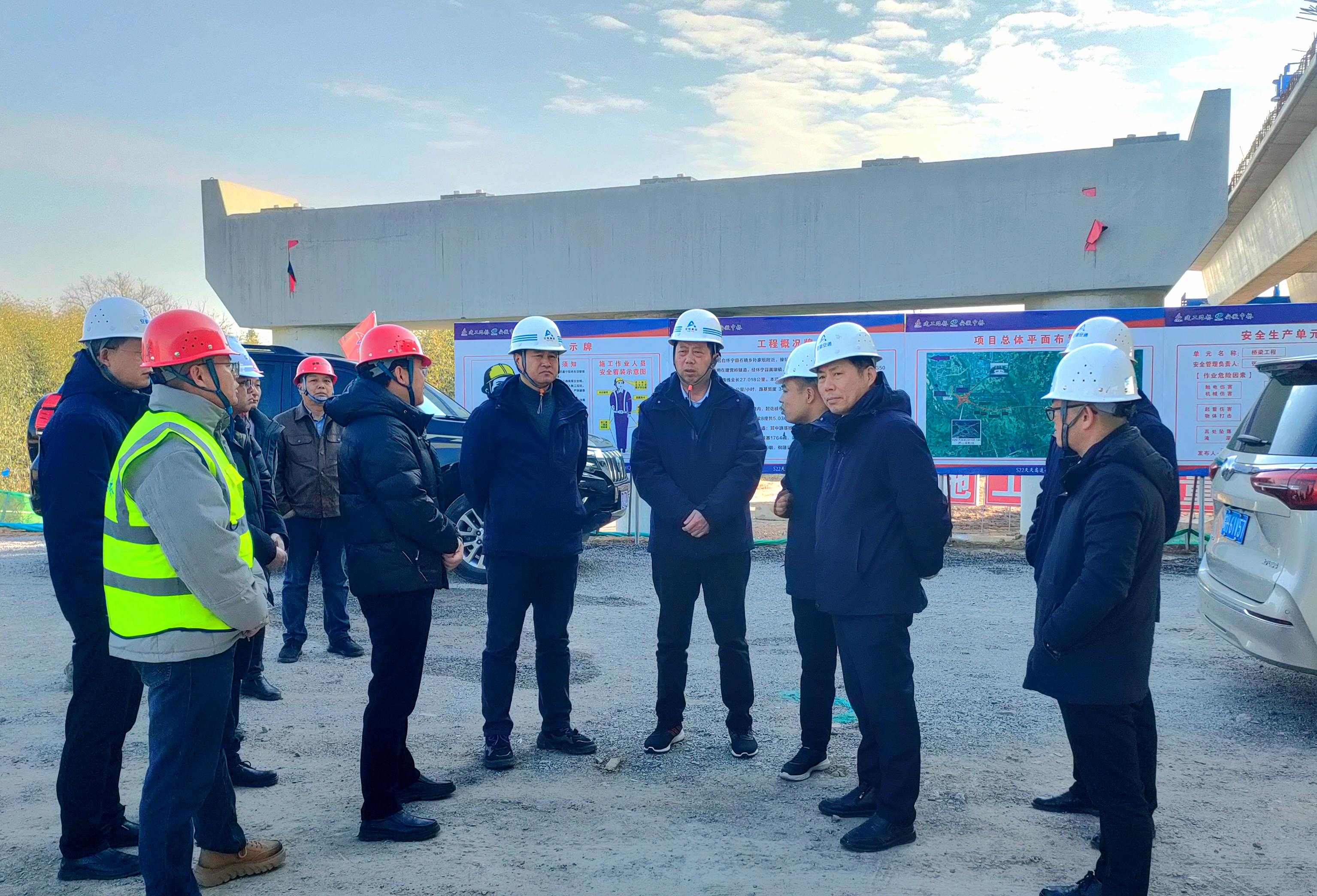 2月10日上午,安慶交控集團(tuán)黨委書記、董事長、總經(jīng)理耿仁平到S22天天高速YQB2標(biāo)調(diào)研,實(shí)地察看了項(xiàng)目皖水河特大橋施工現(xiàn)場,聽取了項(xiàng)目節(jié)后復(fù)工復(fù)產(chǎn)等情況的匯報(bào),并就加強(qiáng)安全隱患排查,做好節(jié)后重點(diǎn)工作部署、全力推動(dòng)項(xiàng)目滿工滿產(chǎn)等方面提出具體要求。