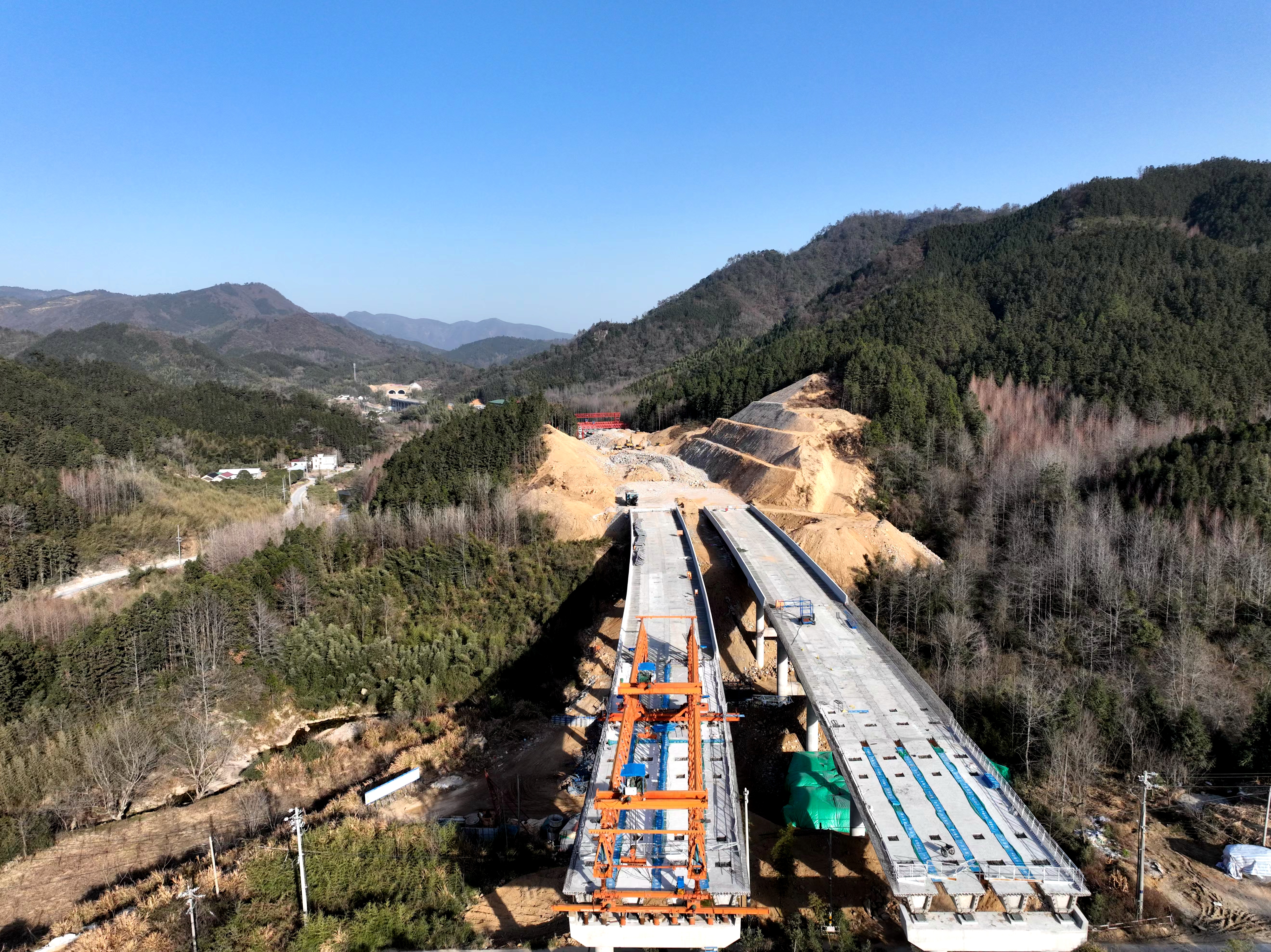 G105龍南改建項目加快推進(jìn)梁板架設(shè)和路面施工。