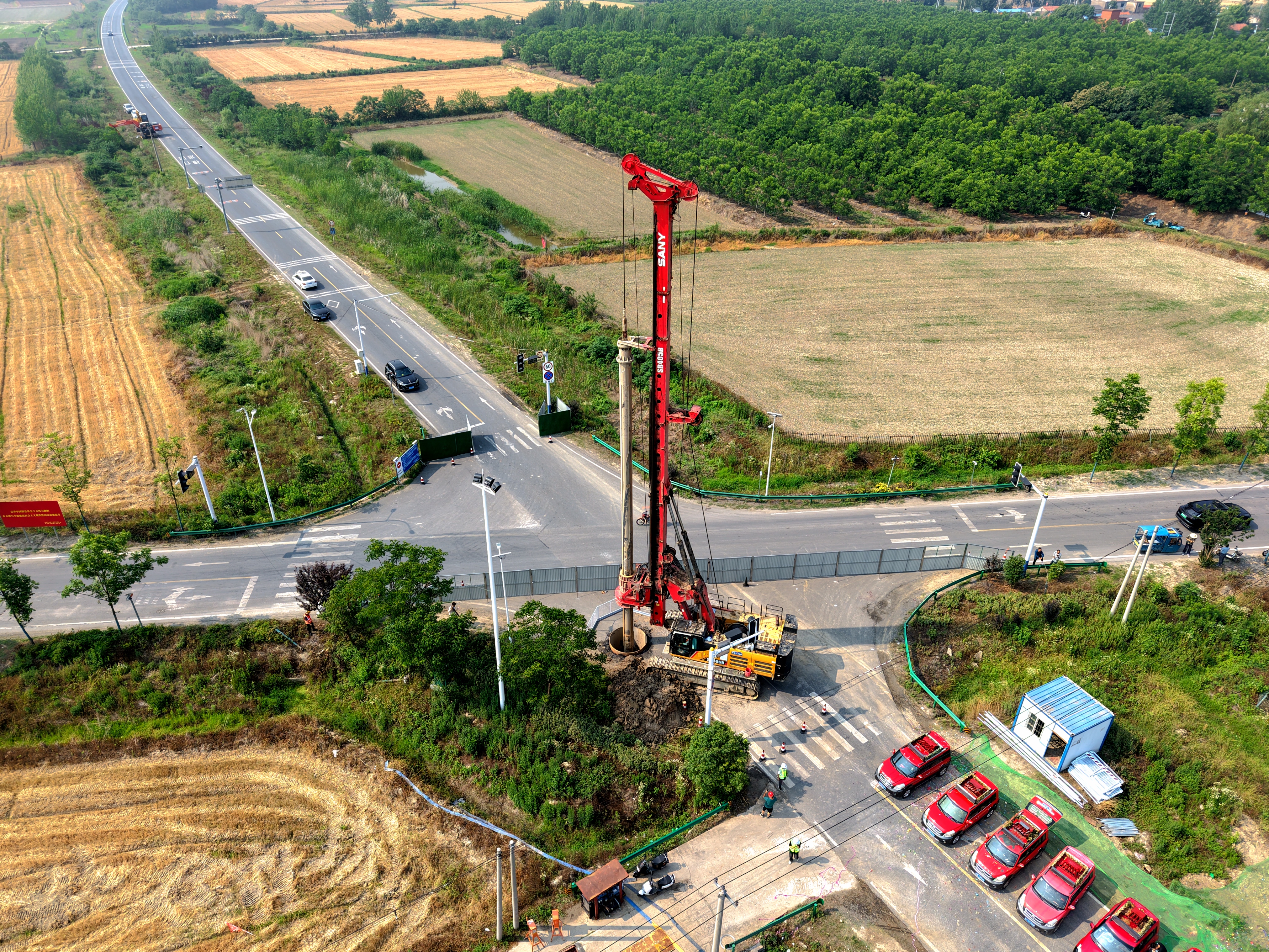 項(xiàng)目位于長豐縣,全長16.6km,樁基總計(jì)278根。開鉆前,項(xiàng)目部積極與相關(guān)單位溝通協(xié)調(diào),圍繞施工組織、安全管理、質(zhì)量控制、進(jìn)度計(jì)劃等內(nèi)容,精心編制施工方案,強(qiáng)化施工作業(yè)管控,確保首樁的順利開鉆。