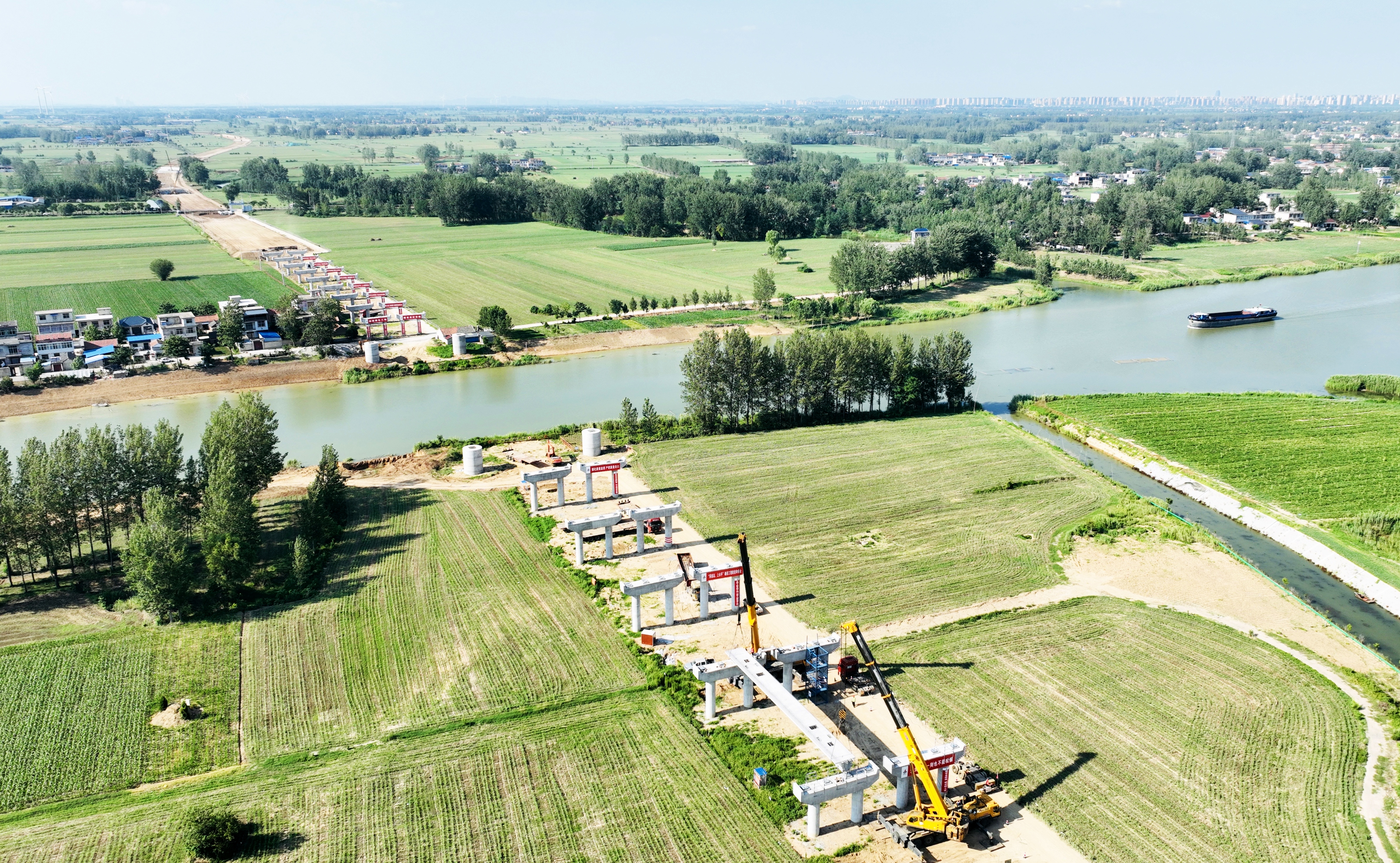 【路橋“競”行時】S235濉唐路三期項目澮河大橋首片箱梁架設完成