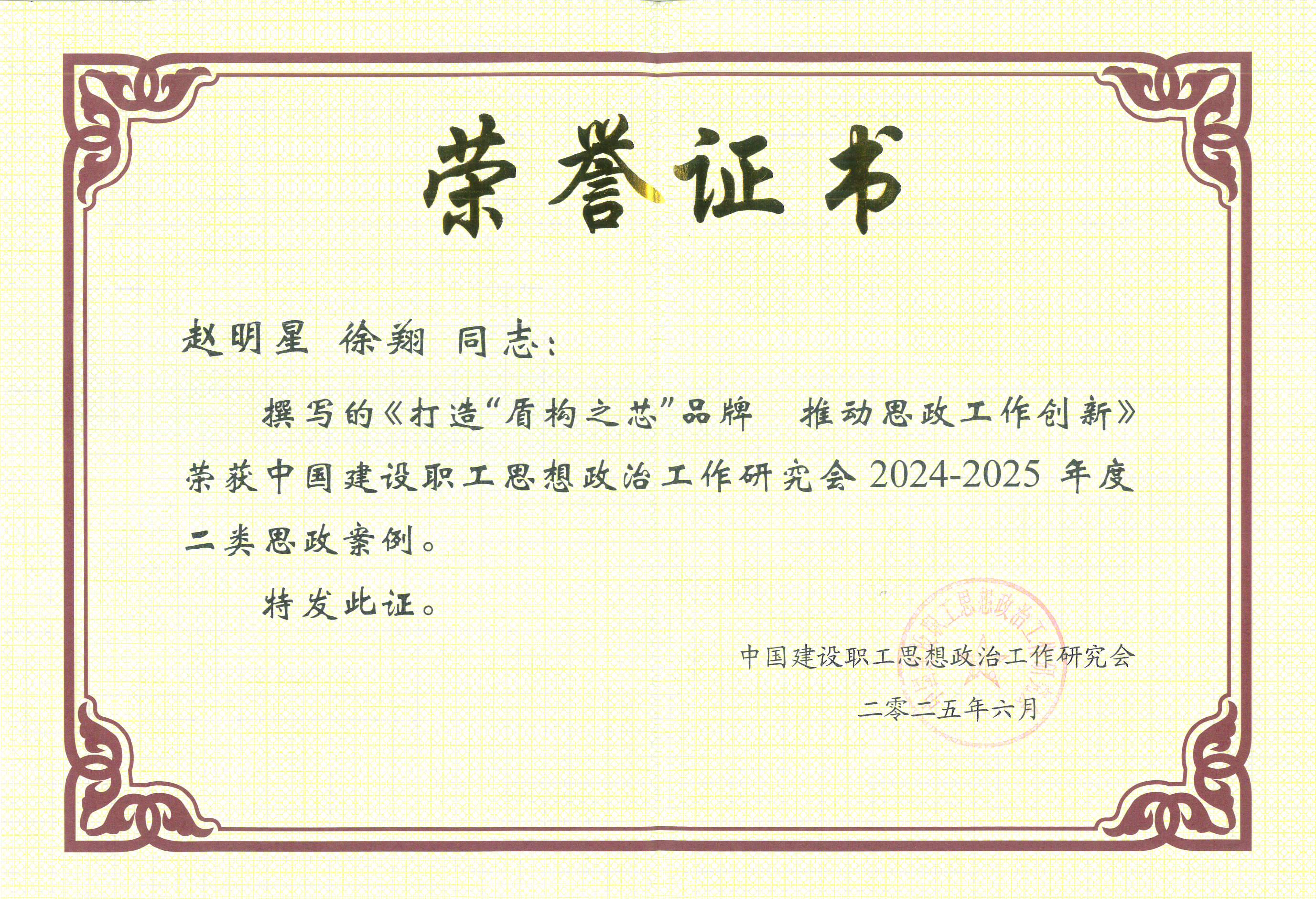 近日,中國思想政治工作研究會(huì)公布2024-2025年度中國建設(shè)職工思想政治研究會(huì)研究成果和創(chuàng)新案例表彰結(jié)果,公司報(bào)送的《打造“盾構(gòu)之芯”品牌 推動(dòng)思政工作創(chuàng)新》獲評(píng)二類創(chuàng)新案例。