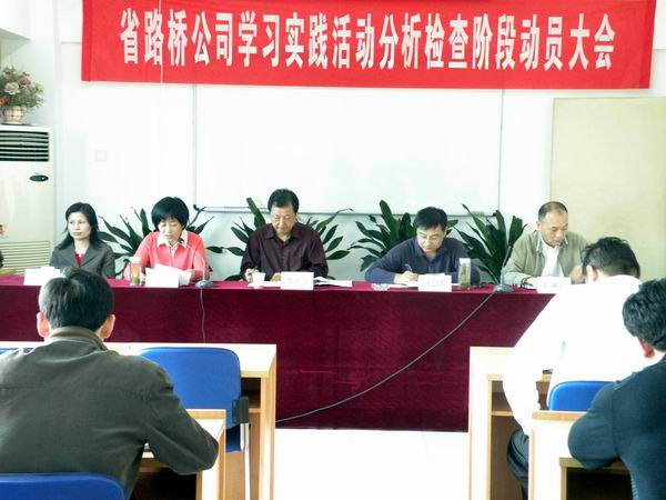 會上,陳書記在動員講話里首先全面回顧總結了學習實踐活動第一階段的情況。陳書記從四個方面總結了第一階段的學習調研情況:一、認真籌備,積極動員。公司黨委迅速行動,及時召開了黨委會議,成立了領導小組及其辦公室,研究制定了《安徽省路橋公司開展深入學習實踐科學發(fā)展觀活動實施方案》等指導性文件,并于3月24日上午,召開了學習實踐科學發(fā)展觀活動動員大會。二、創(chuàng)新方式、強化學習。學習實踐活動動員大會后,公司學習實踐活動領導小組迅速組織實施第一階段的學習實踐活動。一是組織所屬各支部書記就如何組織開展學習實踐科學發(fā)展觀活動進行培訓;二是以求真務實的作風推動學習實踐活動深入開展,及時在網(wǎng)上開辟了學習實踐科學發(fā)展觀專欄,并利用公司內刊《路橋信息》廣為宣傳,為實踐活動營造良好的輿論氛圍;三是將《科學發(fā)展觀重要論述摘編》、《毛澤東、鄧小平、 江澤民、論科學發(fā)展》發(fā)至每位黨員手上;四是強化學習,堅持學習規(guī)定內容與自選內容相結合、集中學習與自學相結合、學習理論與指導實踐相結合,正確處理工學矛盾,創(chuàng)新學習方式,確保學習質量。三、深入調研、解放思想。公司黨委把開展調研作為掌握實情、發(fā)現(xiàn)問題、破解難題的重要基礎,把解放思想大討論作為對學習成果的檢驗。一是集思廣益,確定調研課題,領導班子在廣泛征求意見的基礎上,確定了9個調研課題和課題組成員;二是深入基層,廣泛調研,公司領導班子成員深入到聯(lián)系點開展調研,問計于基層,問計于員工,廣泛聽取員工對公司科學發(fā)展的意見和建議,進一步摸清了問題,理清了思路。四、突出實踐特色,聯(lián)系實際到位。在抓好學習的同時,堅持理論聯(lián)系實踐,把學習實踐活動和生產(chǎn)經(jīng)營緊密結合起來。公司領導班子分別就外協(xié)隊伍的管理與控制、人力資源管理、項目質量管理、市政市場戰(zhàn)略定位、項目財務管理、經(jīng)營管理等方面的問題進行了深入調研,并提出了可行的解決方案,形成了有質量的調研報告。各支部、各項目黨小組都始終把學習實踐活動同生產(chǎn)經(jīng)營和企業(yè)管理緊密聯(lián)系起來,做到相互促進。陳書記指出通過學習實踐活動的開展,公司領導謀劃科學發(fā)展的決心、信心都更加堅定,公司上下的凝聚力、干勁大大增強,生產(chǎn)經(jīng)營形勢良好。截至到目前,公司承攬工程6.88億,同比增長26.7%。同時陳書記還指出了第一階段學習實踐活動中存在的一些問題。接著陳書記對如何做好分析檢查階段的工作提了兩點意見。一、要認真抓好三個環(huán)節(jié)。陳書記對召開領導班子專題民主生活會、形成領導班子分析檢查報告、組織群眾評議三個環(huán)節(jié)提出了具體要求;二、要始終堅持六個貫穿始終,一要把活動主題貫穿始終,二要把理論學習貫穿始終,三要把實踐特色貫穿始終,四要把邊查邊改貫穿始終,五要把嚴格要求貫穿始終,六要把“兩不誤、兩促進”貫穿始終。