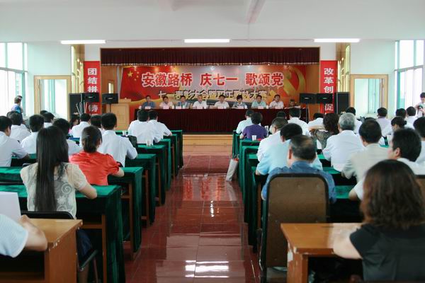 會議在雄壯的《國際歌》聲中開始。黨委書記陳光磊作了《牢記宗旨、珍惜榮譽、勇往直前》激情洋溢的講話。她說:今天我們大家在此歡聚一堂,紀(jì)念我們偉大的中國共產(chǎn)黨成立88周年,并對公司2008年度的先進基層黨組織和優(yōu)秀黨員、黨務(wù)工作者進行集中表彰。這是一個喜慶的日子,也是一個值得紀(jì)念的日子。在此,我謹(jǐn)代表公司黨委對所受表彰的先進單位和個人表示熱烈的祝賀,向公司所有的黨員表示崇高的敬意。接著她深情回顧了黨的光輝歷程,同時要求我們也應(yīng)該更加自覺地牢記黨的宗旨,在自己的工作崗位上勤奮、踏實、敬業(yè)的工作,為黨徽增光,為黨旗添彩。隨后,陳書記對2008年的黨委工作進行了回顧總結(jié),并對2009年下半年就如何進一步加強黨的建設(shè),深入學(xué)習(xí)實踐落實科學(xué)發(fā)展觀,更好地發(fā)揮黨組織的政治核心作用、戰(zhàn)斗堡壘作用和黨員的先鋒模范作用,提了幾點要求:一、繼續(xù)認(rèn)真開展學(xué)習(xí)實踐科學(xué)發(fā)展觀活動,充分認(rèn)清制約公司科學(xué)發(fā)展的問題,并有效整改,使公司走上科學(xué)發(fā)展的軌道;二、轉(zhuǎn)變觀念,找準(zhǔn)黨建工作的“切入點”,積極主動的融入中心工作,充分發(fā)揮基層黨組織的戰(zhàn)斗堡壘作用;三、充分發(fā)揮共產(chǎn)黨員先鋒模范作用,增強號召力、凝聚力、戰(zhàn)斗力。最后,陳書記號召全體黨員把全部心思和精力集中到加快公司發(fā)展上,把各方面的力量凝聚到加快公司發(fā)展上,把共產(chǎn)黨人的先進性體現(xiàn)到加快公司發(fā)展上,以更加飽滿的熱情、更加務(wù)實的精神、更加積極的工作狀態(tài)投入到各項工作中去,團結(jié)帶領(lǐng)公司廣大員工,努力把握發(fā)展的大好機遇,為促進安徽路橋的穩(wěn)健發(fā)展做出新的貢獻。