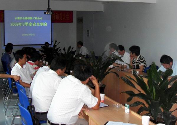 在建項目匯報了上半年的安全生產工作情況、存在的問題及對公司在安全管理上的一些建議,接著,由公司安全生產管理部傳達了集團公司上半年安全生產檢查情況通報與09年第2季度安委會擴大會議精神;通報了09年度上半年對公司各項目的安全考核情況;并對安全生產管理部上半年的安全生產工作進行了總結。