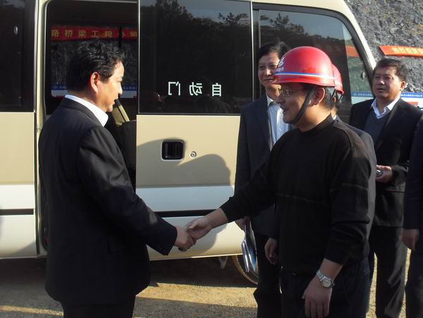 黃省長首先在施工現(xiàn)場聽取了績黃高速項目辦主任方昱對于工程建設情況的匯報。聽完匯報后,黃省長對公司和項目部的工作給予充分肯定和高度評價。他說,“省路橋公司是本省施工的龍頭企業(yè),代表本省的形象,希望你們再接再厲,繼續(xù)做好規(guī)范化施工,高效管理,抓住當前機遇,努力打造優(yōu)質(zhì)工程,不斷提升企業(yè)形象,開辟新的市場,繼續(xù)做大做強。”汪總表態(tài),“省路橋公司在黃省長的關懷下,近年來企業(yè)改制改革方面取得了一定成效,企業(yè)取得了巨大發(fā)展,我們將繼續(xù)做好施工規(guī)范化、精細化管理,在省領導的關心與支持下,我們一定會抓住機遇、迎接挑戰(zhàn),把企業(yè)做大做強”。