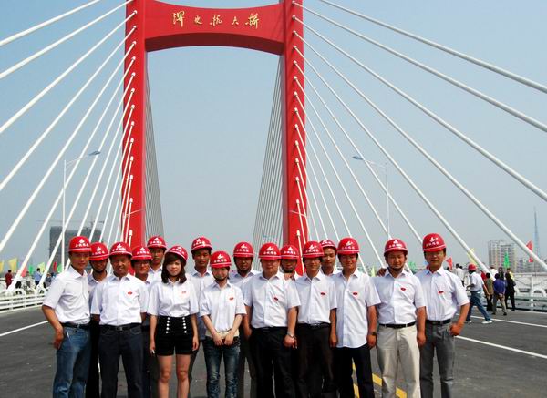 公司自承建該橋以來,攜手省交通規(guī)劃設(shè)計(jì)院、省高等級公路工程監(jiān)理公司、合肥工業(yè)大學(xué)(監(jiān)控方)傾心傾力地投入到大橋的建設(shè)中,克服結(jié)構(gòu)新穎復(fù)雜,建設(shè)時(shí)間緊,施工難度大等困難,充分運(yùn)用新技術(shù)、新工藝、新材料,首次采用斜拉橋主橋塔梁同步的施工工藝,極大的縮短了施工工期;同時(shí)在施工中保質(zhì)量、搶進(jìn)度、重安全,實(shí)現(xiàn)了安全生產(chǎn)零事故的目標(biāo),圓滿地完成大橋建設(shè)任務(wù)。整個(gè)建設(shè)周期16個(gè)月,比常規(guī)工期提前半年通車。