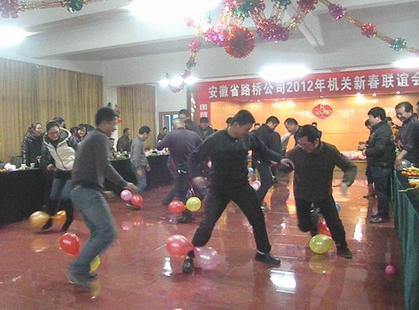 聯(lián)歡會(huì)上,公司黨委書記陳光磊致新年賀詞,祝所有員工節(jié)日快樂。本次聯(lián)歡會(huì)把公司領(lǐng)導(dǎo)和機(jī)關(guān)員工分成四個(gè)代表隊(duì)進(jìn)行游戲,每個(gè)游戲根據(jù)結(jié)果評(píng)定得分,所有游戲結(jié)束后,根據(jù)得分多少評(píng)定獎(jiǎng)項(xiàng)。