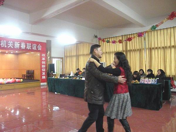 四支代表隊(duì)分別在綁腳聯(lián)體賽跑、集體造句、搶椅子、瞎子擊鼓、辯真假、踩氣球等游戲環(huán)節(jié)展開了激烈競(jìng)爭(zhēng),現(xiàn)場(chǎng)掌聲連連,笑聲、歡呼聲此起彼伏,氣氛十分熱烈。最終飛龍代表隊(duì)在最后一個(gè)游戲環(huán)節(jié)力壓奔馳隊(duì)獲得一等獎(jiǎng)。在游戲中間的節(jié)目表演環(huán)節(jié),各隊(duì)多才多藝的隊(duì)員們爭(zhēng)相登臺(tái)表演,有人唱歌、有人舞蹈、還有人一秀太極拳,競(jìng)賽的節(jié)目使聯(lián)歡會(huì)高潮迭起、亮點(diǎn)紛呈。聯(lián)歡會(huì)上還安排了讓人激動(dòng)的抽獎(jiǎng)活動(dòng)。