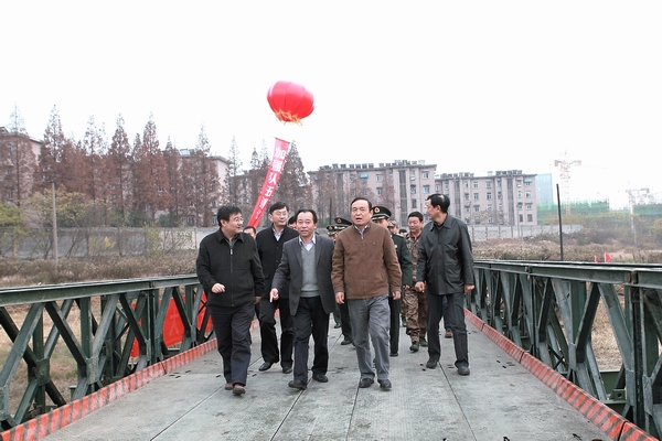 為貫徹交通戰(zhàn)備工作“平時(shí)服務(wù)、急時(shí)應(yīng)急、戰(zhàn)時(shí)應(yīng)戰(zhàn)”總要求,根據(jù)省交通戰(zhàn)備辦公室2012年交通戰(zhàn)備工作安排,11月30日由集團(tuán)公司交戰(zhàn)辦組織安徽省公路工程保障大隊(duì)在合肥警備區(qū)教導(dǎo)隊(duì)訓(xùn)練場(chǎng)進(jìn)行 “321“戰(zhàn)備鋼橋架設(shè)演示。公司承辦了此次演示活動(dòng)。此次演示也是全省交通戰(zhàn)備工作會(huì)議的一項(xiàng)內(nèi)容。南京軍區(qū)交戰(zhàn)辦副主任、軍區(qū)聯(lián)勤部、軍交運(yùn)輸部副部長(zhǎng)王鐵,省交戰(zhàn)辦主任、交通運(yùn)輸廳廳長(zhǎng)梅勁,省交戰(zhàn)辦常務(wù)副主任、交通運(yùn)輸廳副廳長(zhǎng)羅寧等領(lǐng)導(dǎo)出席了觀摩活動(dòng)。省國(guó)動(dòng)委“八辦”專職副主任,省交通運(yùn)輸廳機(jī)關(guān)各處室負(fù)責(zé)人,各市交戰(zhàn)辦負(fù)責(zé)人,省高速控股集團(tuán),交投集團(tuán)和建工集團(tuán)分管領(lǐng)導(dǎo)也參加了觀摩指導(dǎo)。