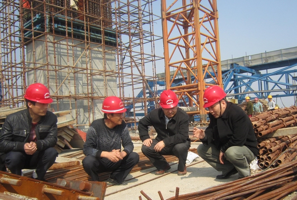 汪總一行深入施工現(xiàn)場(chǎng),實(shí)地查看當(dāng)前的施工進(jìn)展情況。在主橋施工現(xiàn)場(chǎng),汪總仔細(xì)詢問(wèn)了關(guān)鍵性節(jié)點(diǎn)工程的施工計(jì)劃,現(xiàn)場(chǎng)探討了質(zhì)量、安全管理等問(wèn)題,并對(duì)項(xiàng)目施工可能遇到的難題進(jìn)行了溝通。