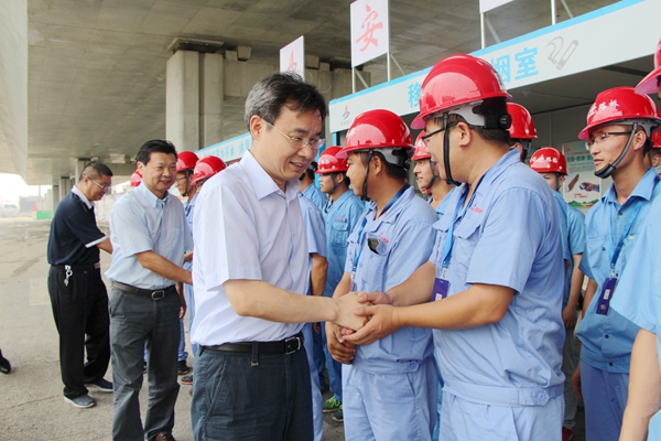 連日以來,高溫酷暑籠罩著江淮大地,但廣大安徽路橋人依然堅守施工一線,揮汗如雨。7月26日上午11時,安徽省住建廳黨組書記、廳長張?zhí)炫?,黨組成員、副廳長吳桂和,副巡視員劉少為一行在集團(tuán)工會主席徐曉光,公司董事長、黨委書記、總經(jīng)理孫學(xué)軍等有關(guān)人員的陪同下,深入合肥阜陽北路高架項(xiàng)目看望慰問一線建設(shè)者,叮囑項(xiàng)目部做好防暑降溫工作,切實(shí)保障職工身心健康。