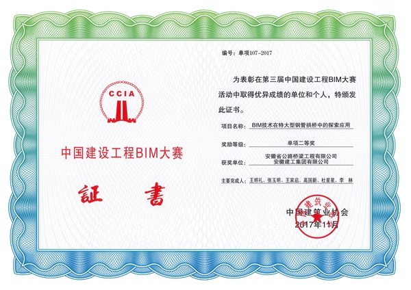近日,在廈門召開的中國建設工程BIM技術(shù)成果經(jīng)驗交流會暨第三屆全國建設工程BIM大賽成果展示會上,由公司選送的《BIM技術(shù)在特大型鋼管拱橋中的探索應用》成果,在全國794項BIM參賽成果中脫穎而出,以優(yōu)異的成績榮獲“第三屆中國建設工程BIM大賽”單項二等獎。