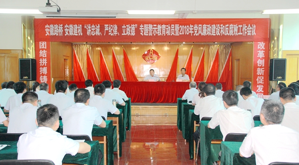 6月13日,公司在七樓會議室召開“講忠誠、嚴(yán)紀(jì)律、立政德”專題警示教育動(dòng)員暨2018年度黨風(fēng)廉政建設(shè)和反腐敗工作會議。公司領(lǐng)導(dǎo)班子成員、中層干部和安徽建機(jī)中層以上干部參加會議,公司黨委書記、董事長、總經(jīng)理孫學(xué)軍出席會議并作動(dòng)員講話,會議由公司黨委委員、紀(jì)委書記林緒坤主持,