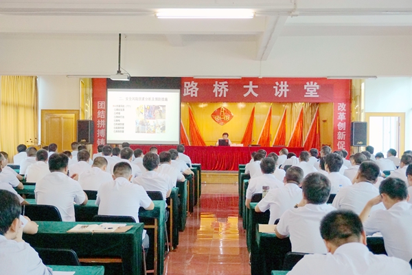 葛輝從安全生產(chǎn)形勢與現(xiàn)狀、安全風險因素分析及預防措施、安全管理責任、安全管理措施、安全標準化建設及安全理念等六個方面,就加強責任制的落實和現(xiàn)場安全管理的重要性和必要性進行了深入淺出的講解。