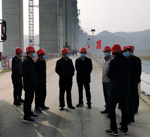 3月6日,濟(jì)源市副市長李拴根蒞臨公司承建的濟(jì)洛西高速黃河特大橋項(xiàng)目調(diào)研疫情防控和復(fù)工復(fù)產(chǎn)工作。濟(jì)源市交通局、濟(jì)洛西高速項(xiàng)目公司主要負(fù)責(zé)同志陪同調(diào)研。