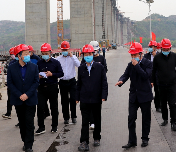 4月21日,河南省收費(fèi)還貸高速公路管理中心主任尹如軍一行到濟(jì)洛西高速黃河特大橋項(xiàng)目調(diào)研。
