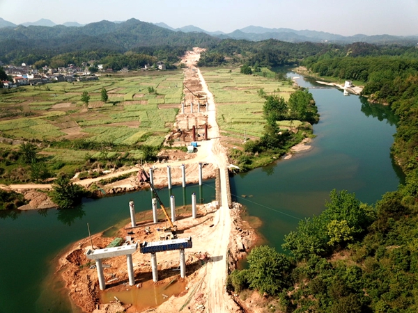 3月25日復(fù)興橋下部結(jié)構(gòu)基礎(chǔ)完成,3月31日蓮花山隧道右線削竹式洞門施工完畢,4月4日梁場首片梁板完成澆筑,4月5日路基一隊與二隊清表完成、便道實現(xiàn)貫通,全線路基、隧道、橋梁工程多點發(fā)力,工程建設(shè)穩(wěn)步推進(jìn)。期間,受降雨影響,白洋河橋圩區(qū)遭到破壞,項目黨支部迅速成立應(yīng)急施工小組,全天駐點搶抓工期,目前白洋河水中墩已全部澆筑完畢,鋼便橋也已經(jīng)完成鋪設(shè),如期完成既定任務(wù),減輕了雨季到來前的施工壓力。