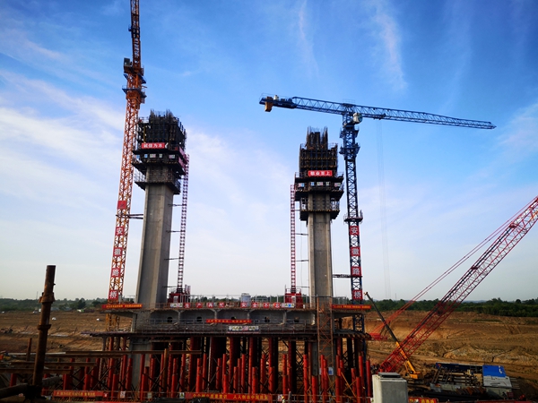 5月以來,項目部再次發(fā)力,乘著公司八屆三次職代會的東風,成立“黨員突擊隊”“青年突擊隊”, 鼓足干勁,迅速集結項目的先鋒力量,吹響了大干快上施工的“集結號”,不斷掀起施工高潮。截至5月18日,項目5月份實際完成產(chǎn)值已達計劃產(chǎn)值的91%,主橋塔柱完成12節(jié),第二聯(lián)鋼管樁架設正在推進,第三聯(lián)混凝土全部完成澆筑,快車道全幅底基層水穩(wěn)完成攤鋪,輔道及慢車道底基層水穩(wěn)施工已完成過半,項目已趕在雨季來臨之前,如期完成了各項施工任務,預計月底項目實際完成產(chǎn)值將達到計劃產(chǎn)值的120%。