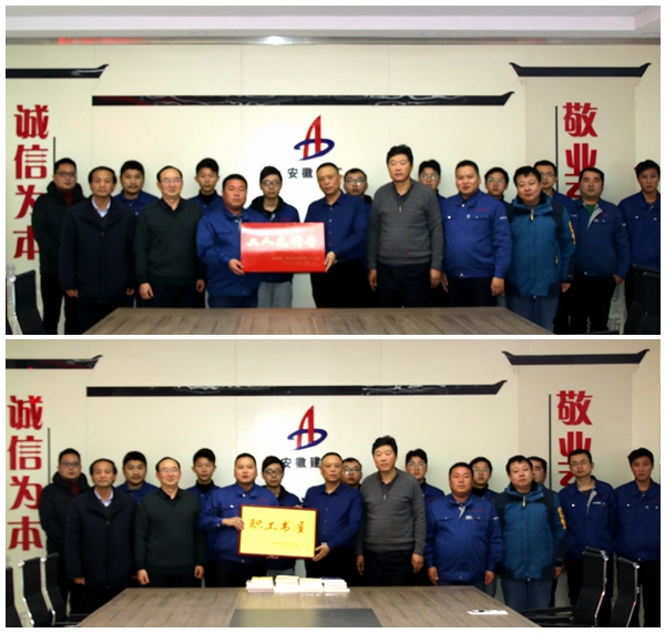 12月11日下午,集團工會副主席李世龍一行到明巢高速05標(biāo)項目驗收“工人先鋒號”和“職工書屋”創(chuàng)建工作,并進行現(xiàn)場授牌。