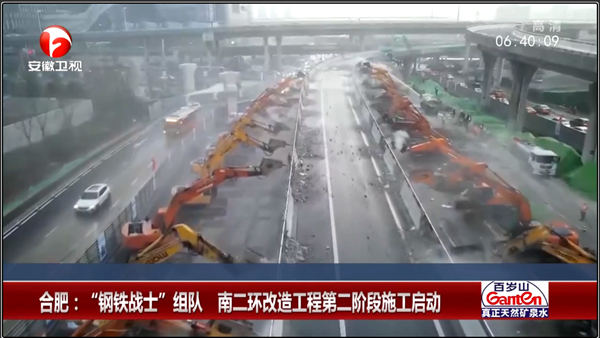 人民網(wǎng)【新春走基層】專欄報(bào)道了該項(xiàng)目大年三十工地不打烊,參建人員持續(xù)奮戰(zhàn)在施工一線。中國日?qǐng)?bào)海外版《End of the road》、合肥日?qǐng)?bào)《“鋼鐵戰(zhàn)隊(duì)”首啃“硬骨頭”》報(bào)道了公司第二次對(duì)老舊匝道橋拆除工作的場(chǎng)景。安徽衛(wèi)視超級(jí)新聞場(chǎng)等媒體以《“鋼鐵戰(zhàn)士”組隊(duì) 南二環(huán)改造工程第二階段施工啟動(dòng)》報(bào)道了南二環(huán)改造工程順利進(jìn)入第二階段施工節(jié)點(diǎn)的訊息。學(xué)習(xí)強(qiáng)國合肥學(xué)習(xí)平臺(tái)、澎湃新聞以《合肥:暢通南二環(huán) 鉚足干勁 大干正酣》為題,合肥新聞聯(lián)播以《“步履不?!北惩?nbsp;建設(shè)按下“快進(jìn)鍵”》《過年堅(jiān)守南二環(huán) 來年道路早暢通》為題,報(bào)道了春節(jié)期間該項(xiàng)目施工現(xiàn)場(chǎng)干出的“加速度”。抖音等自媒體平臺(tái)以短視頻形式展示了數(shù)十臺(tái)機(jī)械同時(shí)作業(yè)的震撼場(chǎng)面,關(guān)注熱度超過3百萬,安徽路橋速度得到合肥市民的再次點(diǎn)贊。
