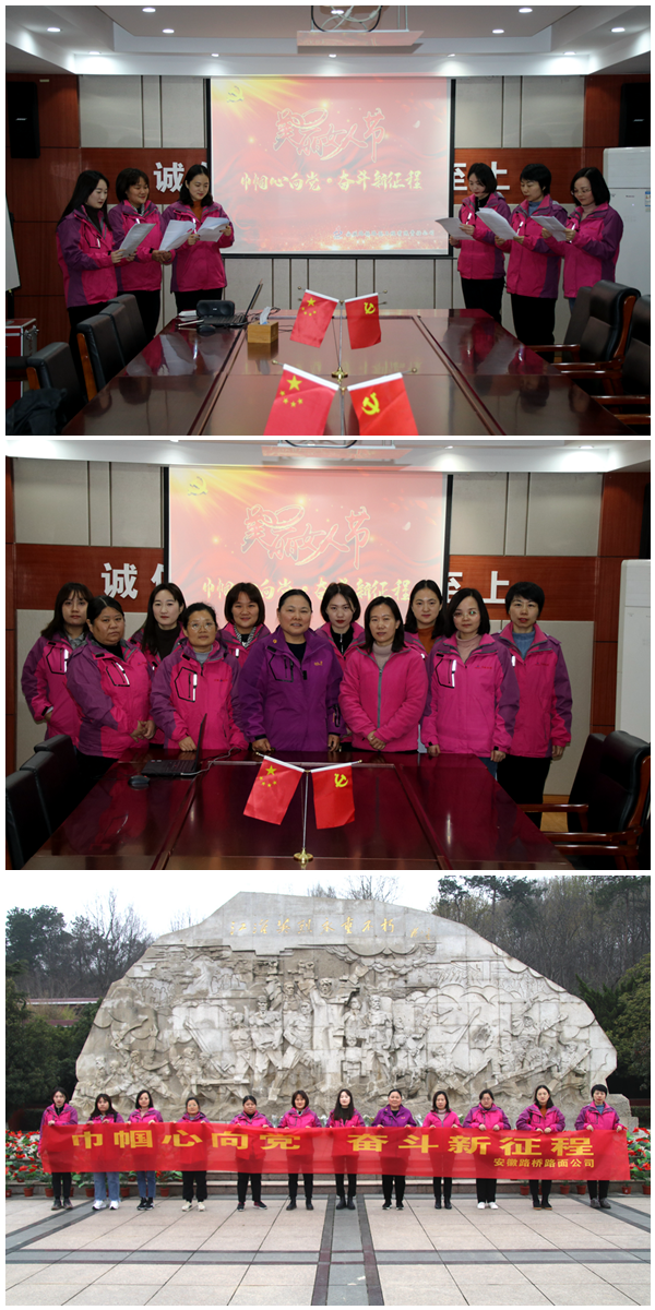 路面公司組織全體女職工開展以“巾幗心向黨 奮斗新征程”為主題的系列活動?!白x經(jīng)典、歌頌黨”朗誦活動,贊美了中國共產(chǎn)黨百年來走過的光輝歷程,表達對祖國深沉的熱愛之情。隨后,開展了“緬懷先烈、激揚斗志”的緬懷先烈活動,集體參觀了大蜀山烈士陵園,深切緬懷革命先烈的豐功偉績。