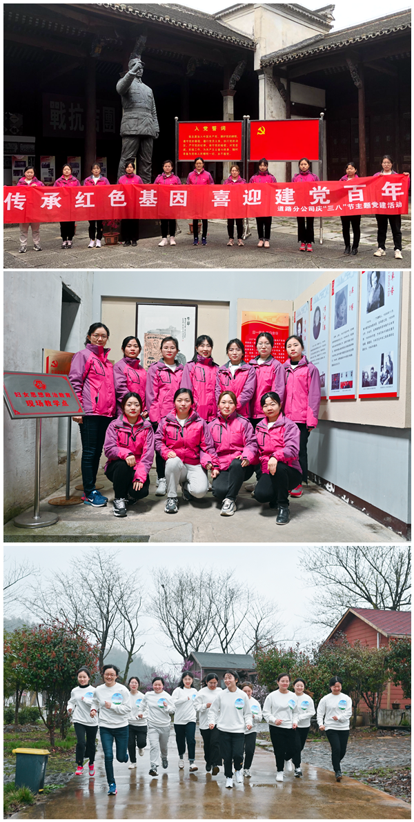 道路分公司開展以“傳承紅色基因 喜迎建黨百年”為主題的慶三八國際勞動婦女節(jié)主題黨建活動。女職工們懷著崇敬的心情來到?jīng)芸h云嶺新四軍軍部舊址紀念館,通過展館內(nèi)珍貴圖文及實物資料,了解革命烈士們可歌可泣的英雄事跡、革命歷程和崇高革命精神。在展館外,女職工在秀美山川間放聲齊唱《唱支山歌給黨聽》,表達對黨和祖國的熱愛之情?;顒幼詈螅€組織了“青春助力十四五 綠色環(huán)保健康行”為主題的健康跑活動。
