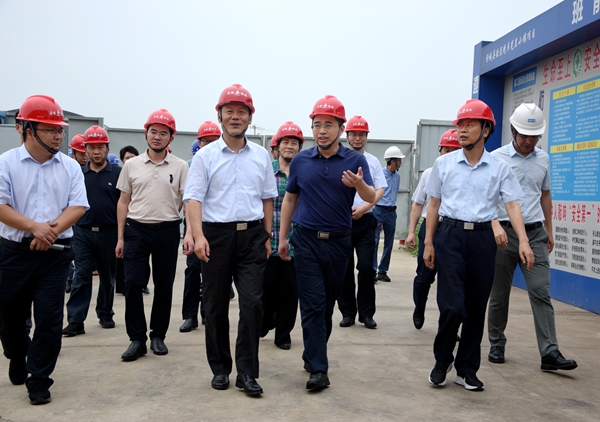 在施工現(xiàn)場,葉露中聽取了舒城縣智慧電子小鎮(zhèn)項目工程總體施工情況的匯報,詳細(xì)了解了施工重難點(diǎn),對項目整體推進(jìn)情況給予充分肯定。他指出,舒城縣智慧電子小鎮(zhèn)項目是六安市重點(diǎn)工程,也是目前招商引資過程中最大的單體建設(shè)項目,對促進(jìn)地方經(jīng)濟(jì)社會發(fā)展有重要作用。要鉚足干勁,以更高標(biāo)準(zhǔn)、更嚴(yán)要求安全優(yōu)質(zhì)高效推進(jìn)項目建設(shè),打造品質(zhì)工程、安全工程,早日實現(xiàn)投產(chǎn)運(yùn)營。他強(qiáng)調(diào),安徽路橋作為省內(nèi)建筑施工行業(yè)領(lǐng)軍品牌,希望更加全面、深入的參與六安市基礎(chǔ)設(shè)施建設(shè),為六安市經(jīng)濟(jì)社會高質(zhì)量發(fā)展作出新的貢獻(xiàn)。