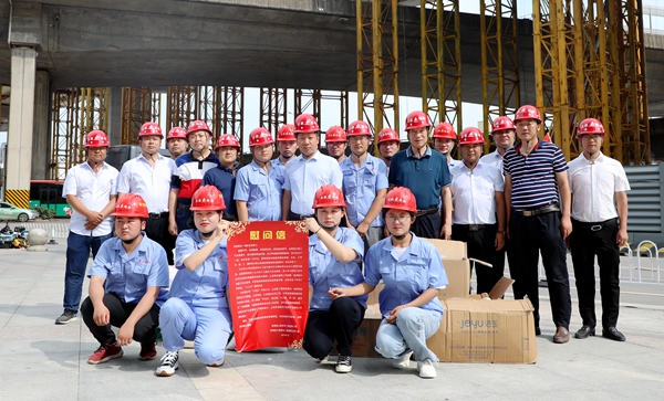 7月11日下午,中國海員建設(shè)工會分黨組成員、副主席武建光一行到暢通二環(huán)(西南環(huán))項目看望慰問奮戰(zhàn)在項目一線的職工,并送來了綠豆、白糖、毛巾等防暑降溫物品。安徽省建設(shè)建材工會(文明辦)主任程德旺,公司黨委委員、副總經(jīng)理任杰,公司工會主席楊建強等陪同。