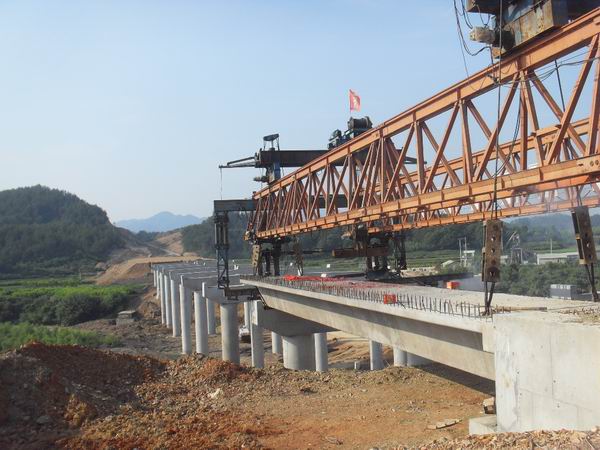 5月28日下午4時(shí),在陣陣喜慶的鞭炮聲中,隨著箱梁的穩(wěn)穩(wěn)落下,績(jī)黃高速02標(biāo)K12+976.5大橋第一片箱梁成功安裝。此次安裝的箱梁長(zhǎng)25米、寬2.85米、重72噸,是第十跨右幅邊梁。據(jù)悉,這是績(jī)黃高速公路全線安裝的第一片箱梁。