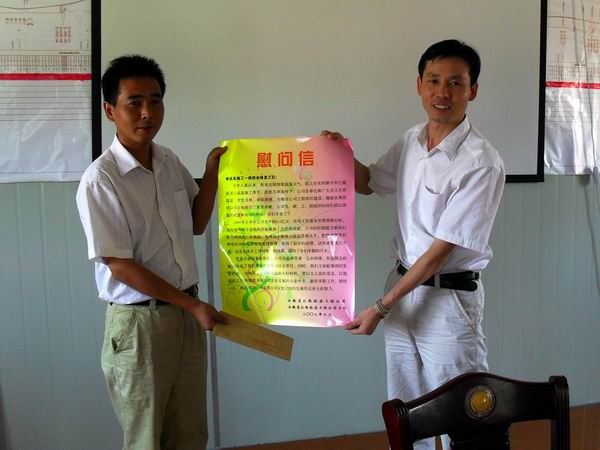 724下午,公司領(lǐng)導(dǎo)一行在盛明宏副總經(jīng)理的帶領(lǐng)下,冒著高溫酷暑,來到了泗許高速亳州段01標(biāo)項(xiàng)目部,同時帶來了慰問金和總公司以及公司工會的慰問信,感謝我標(biāo)段員工的辛苦工作和為公司建設(shè)做出的貢獻(xiàn)。來自公司的這份問候、這份關(guān)心,不僅溫暖了所有員工的心,也為這個炎炎夏日送來了一陣舒爽的涼風(fēng)。
