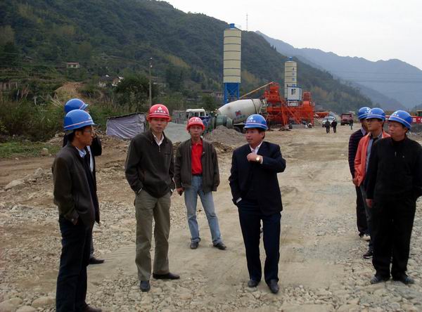 1021,省路橋公司副總經(jīng)理盛明宏、安全生產(chǎn)部經(jīng)理黃勁松一行到我部考察指導(dǎo)工作,并在項目經(jīng)理王遠勝、項目副經(jīng)理陳智及項目總工羅志龍等人的陪同下深入我部施工一線,視察了一工區(qū)的混凝土拌和站建設(shè)情況及挖孔樁施工作業(yè)情況。