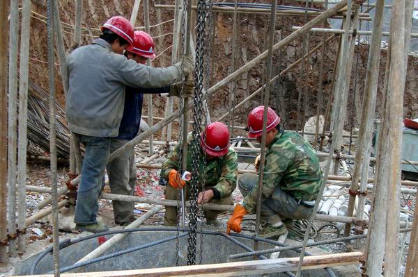 本次通過驗收的4號主體橋墩挖孔樁工程是巖子腳特大橋第一個橋墩工程。項目經(jīng)理劉曉晗和項目總工胡學(xué)祥高度重視,考慮到人工挖孔操作安全的重要性和本次工程涉及到爆破作業(yè),在開挖之前,劉經(jīng)理和胡總工特別為此召開挖孔樁專項安全會議,對施工人員進行全面的安全技術(shù)交底。要求項目部現(xiàn)場技術(shù)人員必須認(rèn)真學(xué)習(xí)和熟悉圖紙,安全人員必須每天到現(xiàn)場檢查安全事項,要求施工隊負(fù)責(zé)人必須做到按操作規(guī)程施工;同時作出規(guī)定,任何一個環(huán)節(jié)不符合操作規(guī)程,立刻停工整頓并處罰相關(guān)人員。在此基礎(chǔ)上,4號橋墩挖孔樁工程不僅完成速度快,而且質(zhì)量和安全得到了充分的保證。