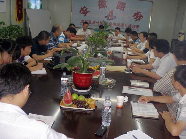 下午,考核組和項目部主要負(fù)責(zé)人以及項目各部門負(fù)責(zé)人在項目部會議室召開檢查考核反饋會議。會上,劉經(jīng)理將瑞尋高速A7標(biāo)的工程量完成情況、進(jìn)度、安全、質(zhì)量、計劃執(zhí)行及成本管理等情況向考核組人員作了匯報,同時指出了我項目部存在的一些問題。接著,考核組成員分別將各項檢查情況反饋給我項目部,指出了我項目在安全管理、財務(wù)、核算審計、企業(yè)發(fā)展、人力資源、材料管理、機(jī)械設(shè)備管理、項目管理、項目質(zhì)量等方面存在的問題以及解決措施。