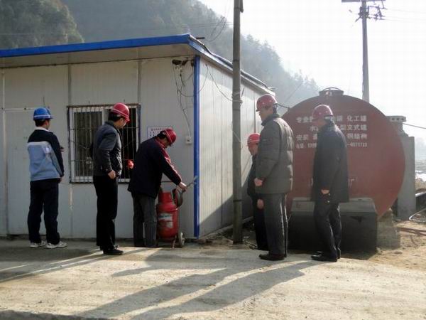本次檢查由分管安全的黨支部書記邵建新帶隊,生產(chǎn)副經(jīng)理朱達霏、安全部長萬和國及各工區(qū)長、工區(qū)專職安全員共同參加,主要對各工區(qū)施工點現(xiàn)場逐一進行排查,確保不留安全隱患。檢查組重點針對拌合站的防盜、防滑和用電安全、梁場的臨時用電、梁場張拉操作及安全交底、橋梁施工欄桿防護、邊坡施工防護和油庫防火設(shè)施進行清查。檢查拌合站時,發(fā)現(xiàn)拌合站人員防盜意識不強,人走不關(guān)門,給予負(fù)責(zé)人嚴(yán)厲批評。對梁場實施張拉施工強調(diào)指出一定要按照操作規(guī)程進行;針對橋面施工橋面防護網(wǎng)脫落的情況,當(dāng)場處理,并給予責(zé)任人下發(fā)整改通知書;在油庫旁邊檢查滅火器情況,當(dāng)場演示滅火器的使用。