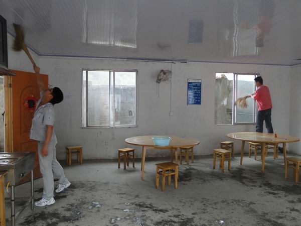 下午5點(diǎn),按照先前的分工,各部門的團(tuán)員都積極行動(dòng)起來。試驗(yàn)室負(fù)責(zé)餐廳生活區(qū),工程部、質(zhì)檢部負(fù)責(zé)宿舍樓,其余部門負(fù)責(zé)辦公走廊及前場(chǎng)活動(dòng)區(qū)域的衛(wèi)生打掃。清洗桌子,擦洗門窗、打掃走廊,清理枯枝敗葉,經(jīng)過兩小時(shí)的辛勤勞動(dòng),整個(gè)項(xiàng)目部煥然一新。