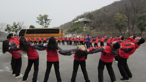 4日一大早,在凜冽的寒風(fēng)中,大家分成三個(gè)組,并起好各自的隊(duì)名:同心隊(duì)、利劍隊(duì)和團(tuán)結(jié)隊(duì)。拓展訓(xùn)練的項(xiàng)目共分為背摔、挑戰(zhàn)150、七巧板、極速60秒、驛站傳書、創(chuàng)意晚會、跨越斷橋、單杠8個(gè)項(xiàng)目。