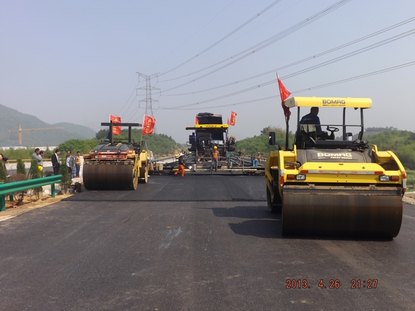 為保證此次試驗段攤鋪順利進行,項目部于4月25日晚召開專項會議,對各施工班組及機械操作人員進行詳細的技術(shù)、安全交底,對整個施工過程的各個環(huán)節(jié)進行了詳細確認,將責(zé)任、要求細化到個人。會議強調(diào)在施工過程中要嚴(yán)把質(zhì)量關(guān),瀝青出場溫度、到場溫度、攤鋪溫度、初壓溫度、復(fù)壓溫度、終壓溫度等相關(guān)指數(shù)均要在設(shè)計范圍內(nèi),同時,安全保障措施等也要控制到位。