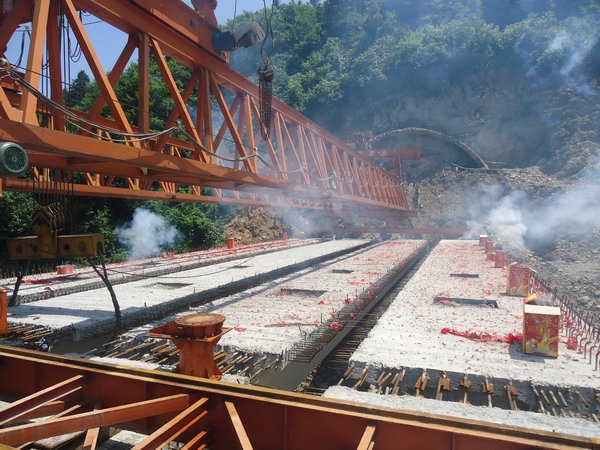 寧績07標成功架設(shè)最后一片箱梁 發(fā)布時間:2013年06月03日 來源:寧績07標 發(fā)布人: 作者:衛(wèi)驥午 瀏覽:2846次 6月3日上午10時58分,伴隨著一陣陣響徹山谷的鞭炮聲,寧績07標項目最后一片箱梁平穩(wěn)準確地架設(shè)到位。至此該項目箱梁全部架設(shè)完成。