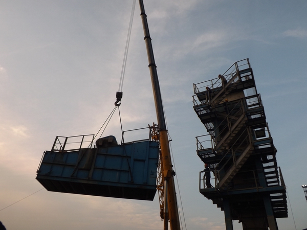 G205改建路面項目完成拌和站主樓吊裝 發(fā)布時間:2013年07月19日 來源:G205改建路面項目 發(fā)布人: 作者:楊艷峰 瀏覽:2738次 7月17日下午3時,伴隨著響聲震天的鞭炮聲,兩輛大型吊車在安全技術人員和作業(yè)人員的通力協(xié)作下,安全有序地進行拌和站主樓的吊裝。經過全體施工人員的努力,于當日下午6時30分完成拌和站主樓的吊裝。